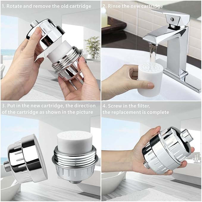 - NO TOOLS, UNIVERSAL INSTALLATION: Simply unscrew your shower filter head, pop out the old cartridge, and pop in this advanced multi stage shower filter cartridge.
