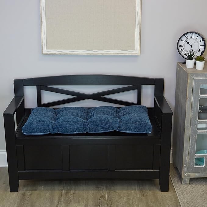 Klear Vu Corner Nook or Piano Seat Omega Non-Slip Tufted Bench Cushion for Indoor Furniture, Entryway Storage, Bay Window, 33 Inches, 10 Blue