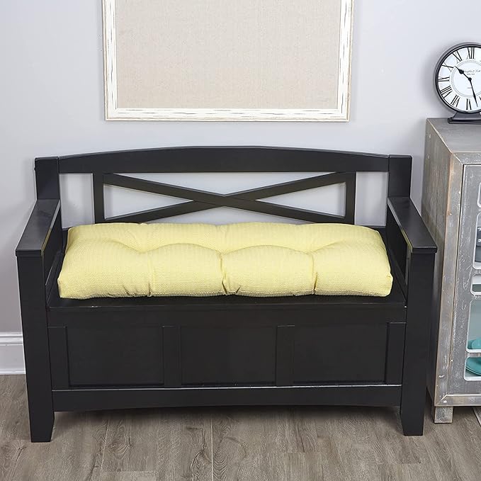 Klear Vu The Gripper Omega Non-Slip Tufted Bench Cushion for Indoor Furniture, Entryway Storage, Bay Window, Corner Nook or Piano Seat, 43 Inches, 15 Yellow