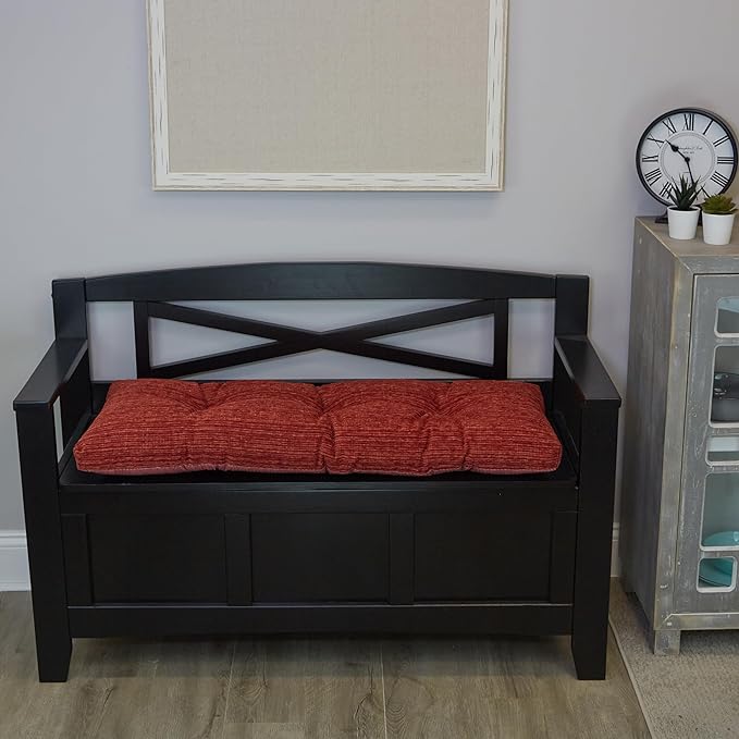 Klear Vu Corner Nook or Piano Seat Omega Non-Slip Tufted Bench Cushion for Indoor Furniture, Entryway Storage, Bay Window, 35 Inches, 17 Red