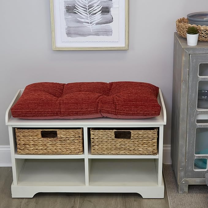 Klear Vu The Gripper Omega Non-Slip Tufted Bench Cushion for Indoor Furniture, Entryway Storage, Bay Window, Corner Nook or Piano Seat, 30 Inches, 17 Red
