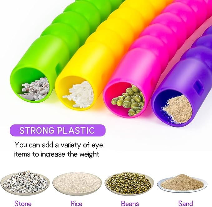 - Can Be Aggravated: The plastic tube of the hoops is hollow, so if you need to increase its weight, you can add sand or stuffing to adjust the weight of the kids plastic hoops toys. Of course, you can't add to much weight too Exceed the load of the hoops kid toys, otherwise the hoop are very easy to fall apart, in addition, the ends of each plastic hoops piece are not open, if you add the sands, it can ensure uniform force.