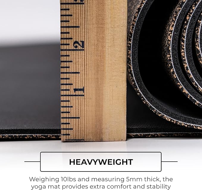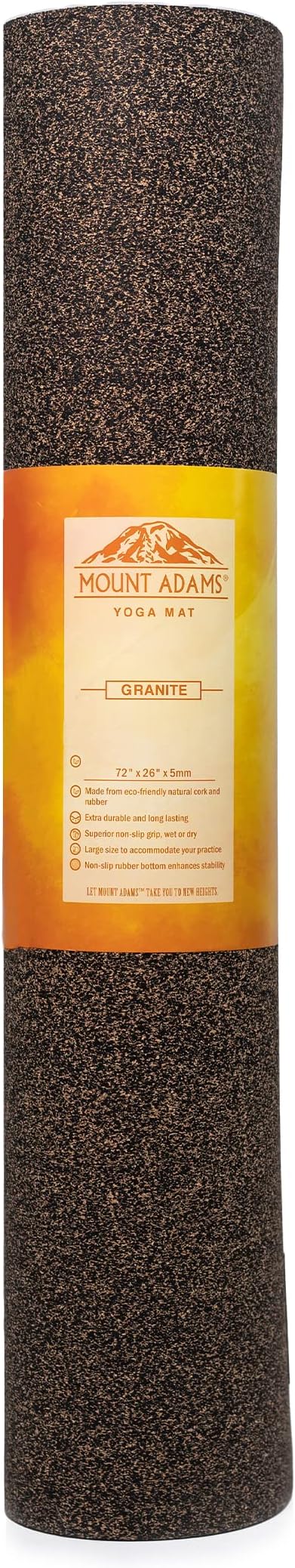 Mount Adams Granite XL Heavy Yoga Mat, 72” x 26” Cork and Natural Rubber Exercise Mat, 5mm Thick Workout Mat, Wet or Dry Non Slip Mat, Heavyweight Extra Large Gym Mat for Fitness or Pilates