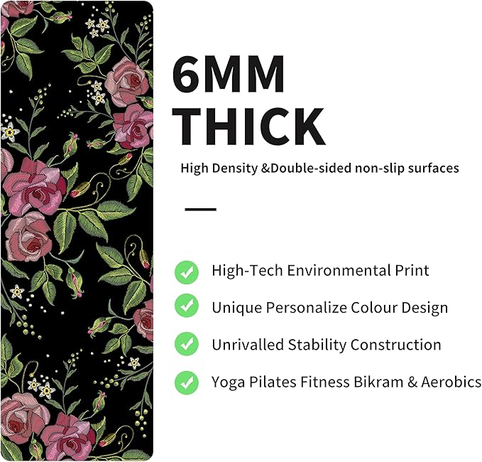 nuveti Yoga Mat Print Extra Thick TPE Non Slip Fitness Exercise Mat with Carrying Bag,72"x24" Extra Thick 6MM Exercise & Workout Mat for Yoga, Pilates Fitness and Floor Exercises