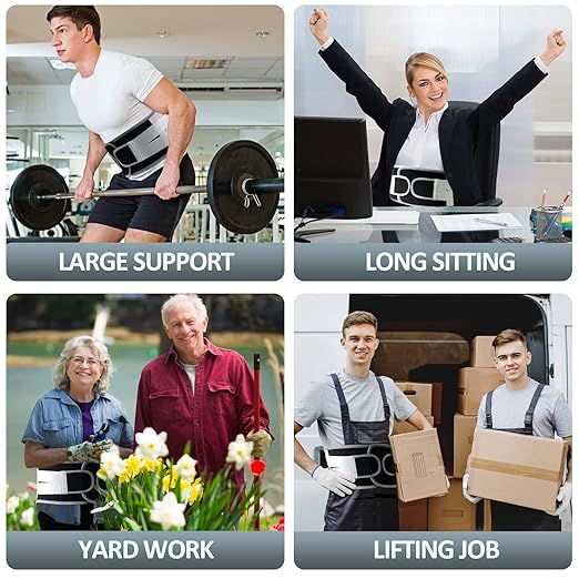 - Perfect Fit with 6 Sizes: Our back brace features upgraded high-density velcro fasteners that allow you to adjust the level of compression. It is available in six sizes to ensure a precise fit for everyone - S (25.9”-31.5”), M (31.5”-37.4”), L (35.4”-41.3”), and XL (41.3”-45.2”),XXL(45.2”-50.3”),XXXL(50.3”-56.6”). Make sure to measure your belly circumference for the best fit.