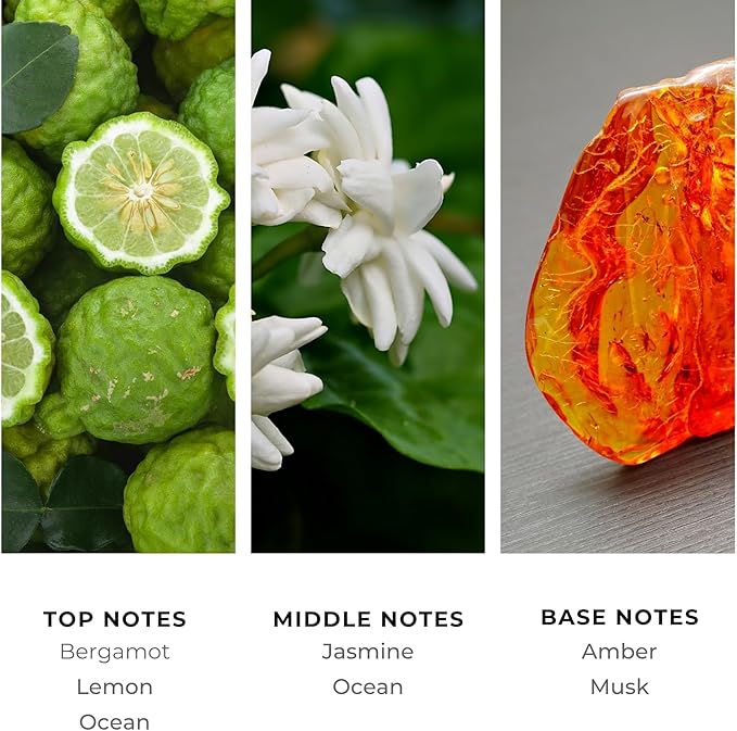 - Ocean Citrus with Jasmine Amber - Evoking refined coastal getaways, this luxury home fragrance combines lemon, ocean air, and jasmine over amber and musk.