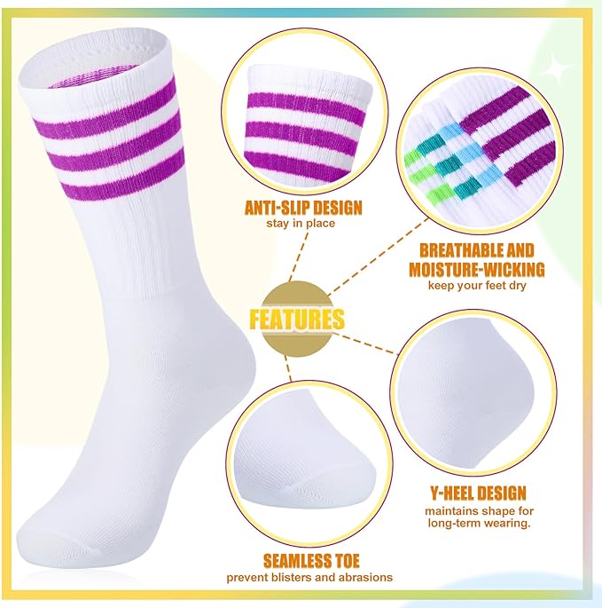 - Package Include: you will receive 4 pieces of 80s headbands, 4 pairs of neon sweat wristbands and 4 pairs of striped 80s socks in 4 different colors, sufficient for gymnastics wristbands gymnastics headband and aily outfit