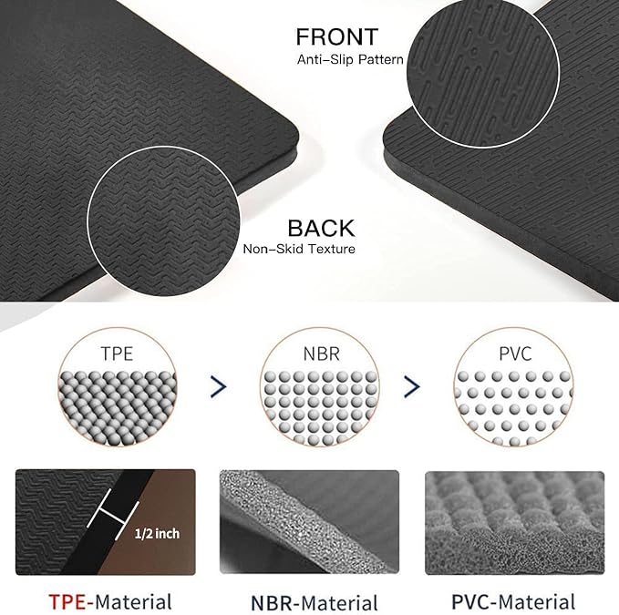 - Extra Large and Extra Thick: Our yoga mat measures 72"x 48" and boasts a thickness of 1/2 inch, offering ample room and superior comfort.Mat with a thickness of 1/2 inch can relief from joint pain during floor.