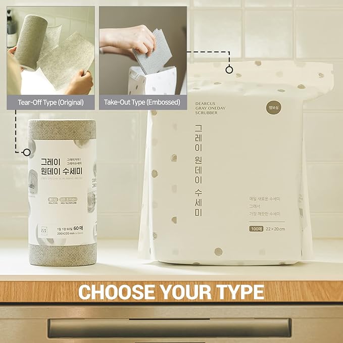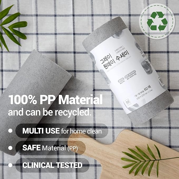 DEARCUS Gray One Day Scrubber - No Odor Dishcloths for Washing Utensils, Cookware, & Cooktop – Multipurpose Lint Free Cleaning Cloths for Kitchen Made of PP - for One Day Use, 1 Pack 60 Sheets