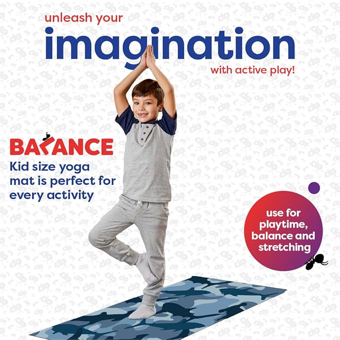 - THE PERFECT STARTER MAT FOR YOGIS – This non-slip yoga mat for kids provides a safe, phthalate-free surface for yoga, stretching, and play. The 3mm cushioned mat offers comfort while improving balance, focus, and fun