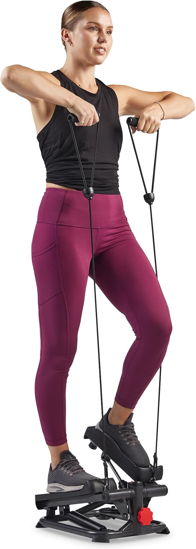 - 【COMPLETE BODY WORKOUT COMBO】The 2-IN-1 Stepper engages your glutes, quads, hamstrings, and calves with step-ups and downs, while the integrated arm resistance bands simultaneously challenge your biceps, triceps, shoulders, and core.