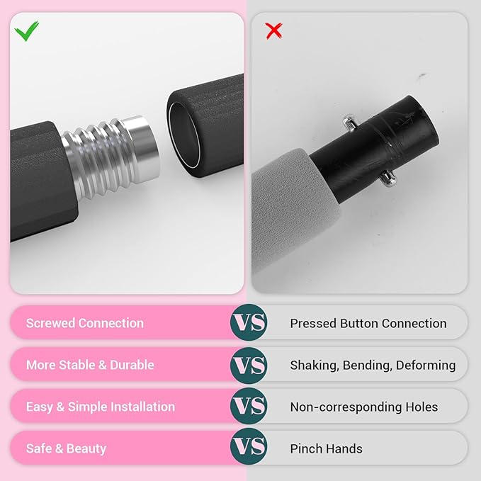 - [Upgraded Metal Adjustment Buckle]: Our pilates bar come with newly upgraded heavy-duty metal adjustment buckle and nylon rope with clear graduations. Just press the button easily, you can adjust the nylon rope to the desired length more quickly and accurately when training different movements. The adjustable ranges from 4.3 inches to 18 inches. Our pilates bar kit with resistance bands are suitable for those who are between 5.2 feet and 5.8 feet height to practice.