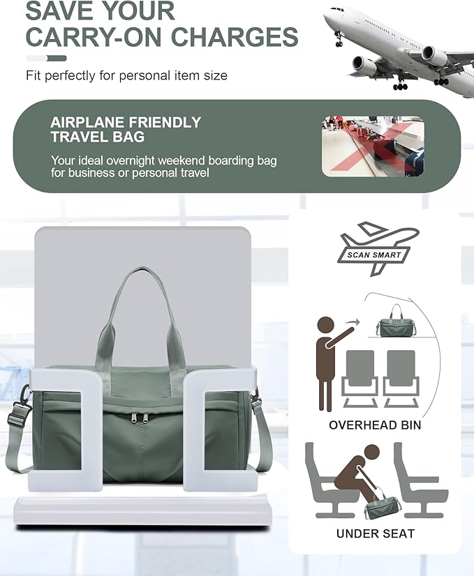 - 【Ideal Carry-On Size】The personal item bag for airlines are provided as approximately 18.11""x9.84""x9.84"". These dimensions ensure that the bag meets typical carry-on size restrictions for airlines. The small duffle bag is suggested for use during overnight weekend trips.