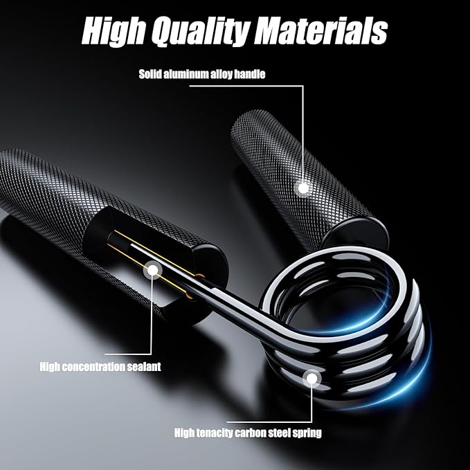 - Quality Material:This hand grip is made of knurled aluminum handles and high quality springs for a long-lasting workout tool. The aluminum handles are strong and lightweight, it will not damage your hands and fingers, which will bring you an excellent exercise experience.