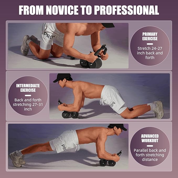 - 【Double Widen Wheels Design for Stable and Safe Workout】: Ab roller features a widened two-wheel design that increases the wheelbase and expands the contact area with the ground, effectively reducing lateral sway and providing enhanced stability during exercises