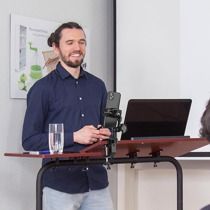 - 【Multi-Angle Adjustable】:Phone bracket arm has 3 ball heads,allowing to each end of ball head 90°tilt freedom by twisting joint knob,also twisting joint knob to lock end of ball heads,stainless steel ball head on top of stand arm support phone clip 360°rotation flexible,it's convenient for user to capture best viewings of cellphone.