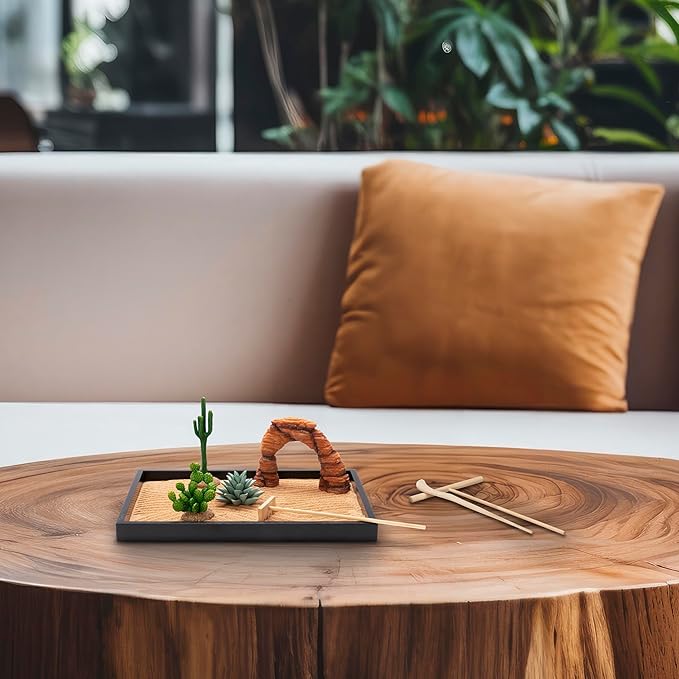 - Southwestern Decor for Home. Create a stunning Desert Zen Garden featuring 2 cactus sculptures, succulent & rock arch; strikingly realistic & unique to this product. Set within stunning tan brown sand