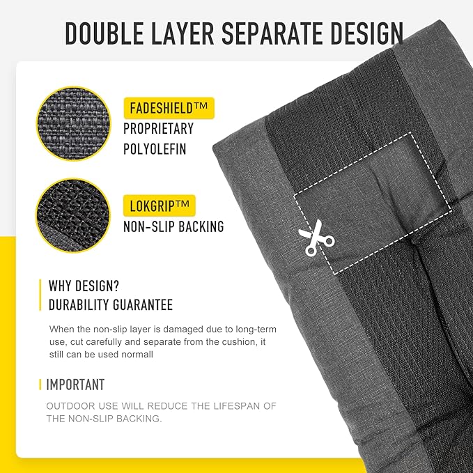- 【 Double-layers Bottom Separate Design】In addition to the LokGrip non slip backing layer, also have peoprietary polyolefin protective layer inside, which effectively prevents damage to the foam filling due to friction. Even if the spider web shape bottom non slip layer is damaged due to long-term use, cut carefully and separate from it, the chair cushion also can still be used normal, double protective, make the chair cushion more durable.