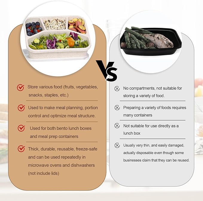 - 【FOOD-GRADE & REUSABLE LUNCH BOX】- These meal prep lunch containers are made of durable wheat straw and food grade PP material, BPA free, no odor, stain-resistant. It is a great bento box adult lunch box that can replace disposable lunch boxes, sturdy and reusable, easy to clean.