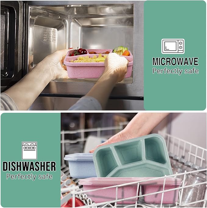 - 【MICROWAVE & FREEZER & DISHWASHER SAFE】- These wheat straw bento lunch boxes can withstand temperatures between -4°F to 248°F (-20℃ to 120℃). The reusable lunch containers is convenient to open and store frozen foods for long-term meal plans. The lid needs to be removed and hand wash please for avoiding deformation by high pressure when heating in the microwave and washing in the dishwasher.