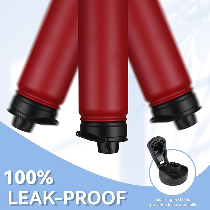 - 【Spout Lid & Straw Lid】 This water bottle comes with 2 lids: an innovative leak-proof spout lid and a newly improved straw lid that has been enhanced for better flow. Easily fill your water bottle with ice and clean it through the wide mouth opening. Both allow easy one-handed or hands free sipping, they are designed for you to drink anytime, anywhere.