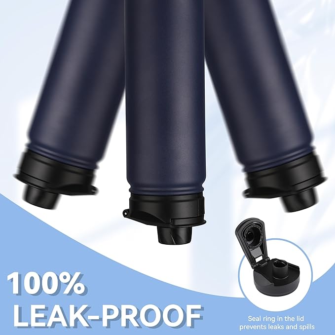 - 【Spout Lid & Straw Lid】 This water bottle comes with 2 lids: an innovative leak-proof spout lid and a newly improved straw lid that has been enhanced for better flow. Easily fill your water bottle with ice and clean it through the wide mouth opening. Both allow easy one-handed or hands free sipping, they are designed for you to drink anytime, anywhere.