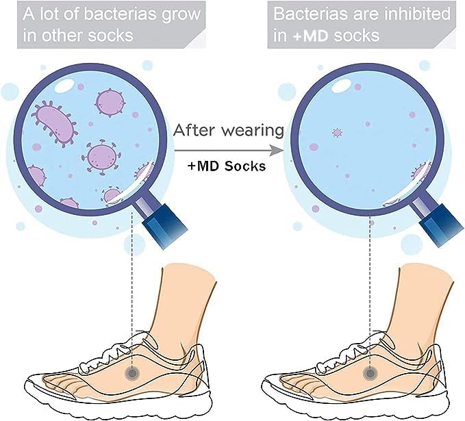 - 3.【Moisture Wicking & Breathable】: The average temperature of +MD diabetic socks is 2 degrees lower than that of cotton socks. Therefore, these socks will help keep your feet cool and dry, which can help you avoid infections. They are ideal for sweaty feet and smelly feet.