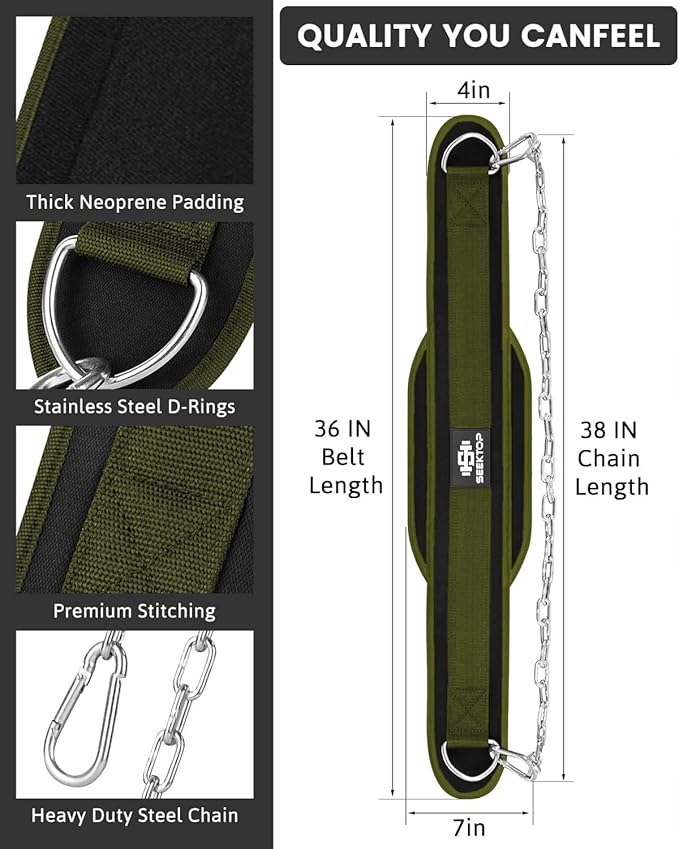 - ✔【Strong & Compact】: When you have the Seektop Dip Belt to assist you when performing dips and other sets, you can focus 100% on improving your technique and strength. Whether you are power lifting, doing pull-ups, or bodybuilding, this belt offers unparalleled support. It helpful for weight lifting, squat, training, fitness.