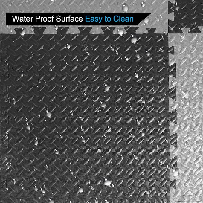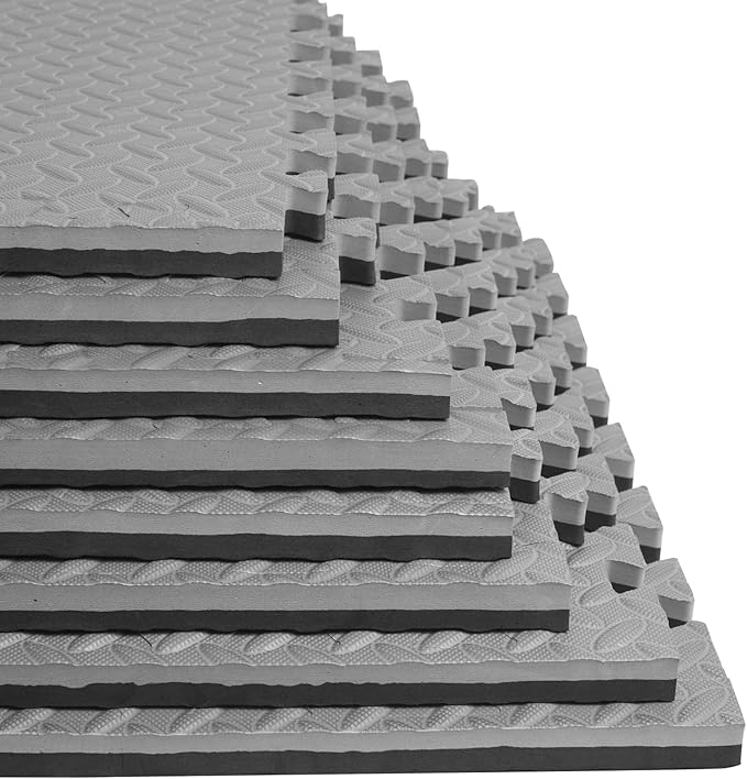 1 in Thick 48 Sq Ft EVA Foam Exercise Gym Mats 12 Pcs - Interlocking Puzzle Floor Tiles for Home Gym Heavy Workout Equipment Flooring - 24 x 24in Tile, Black & Gray