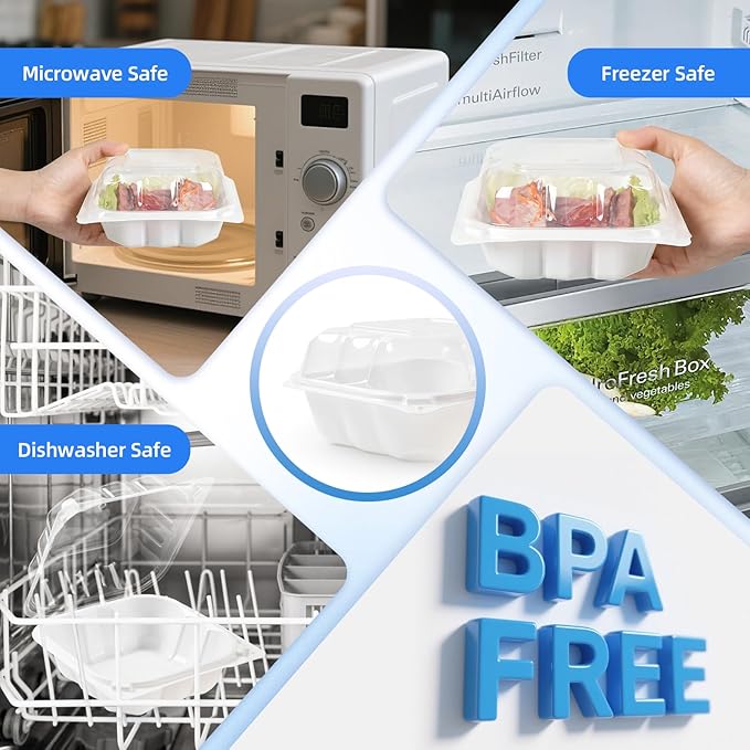 - →MICROWAVE & FREEZER SAFE: Conveniently reheat leftovers or store for later without worry. YANGRUI hinged containers are designed for safe use in the microwave and freezer