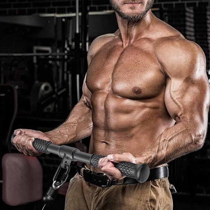 SELEWARE Triceps LAT Pulldown Attachments Home Gym Workout Accessories with Non-Slip Soft Rubber Grip Cable Machine Attachments Triceps Rope Double D Row Handle Pull Down Bar Straight Bar Exercise
