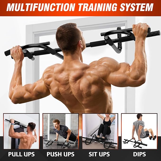 - MULTIFUNCTIONAL EXERCISE BAR - SPORTIC Pull Up Bar has 5 positions of handles, suitable for all levels. In addition to providing pull-ups, this product also provides wide-grip push-ups, sit-ups, push-ups, arm and shoulder exercises to achieve a variety of exercises that help build a strong upper body. It enables multiple upper body and core muscle exercises, replacing all other devices with multiple functions