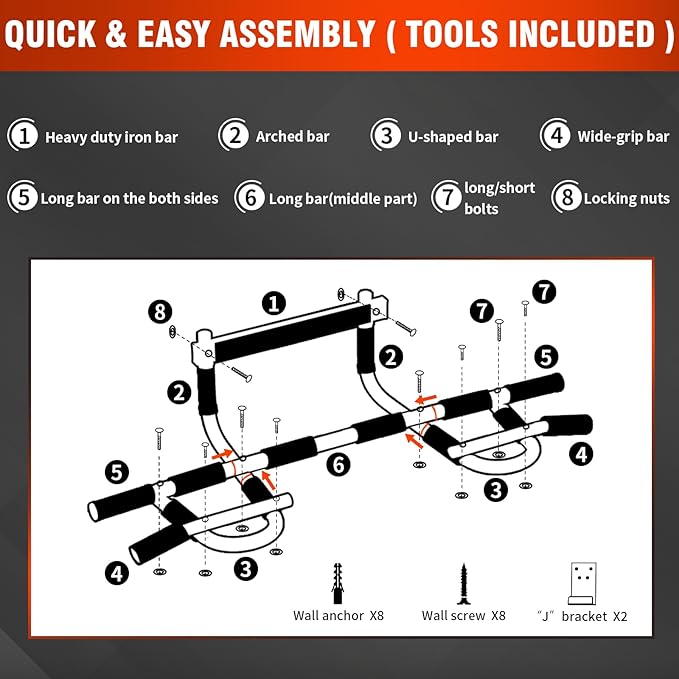 - PREMIUM MATERIALS - This pull up bar is constructed of heavy duty steel for its sturdiness and stability, and the top square steel has thick foam stripes for wall protection. The handle is equipped with ergonomic comfort foam for a comfortable grip, non-slip and wear-resistant, adding stability and preventing the door frame from being scratched or damaged