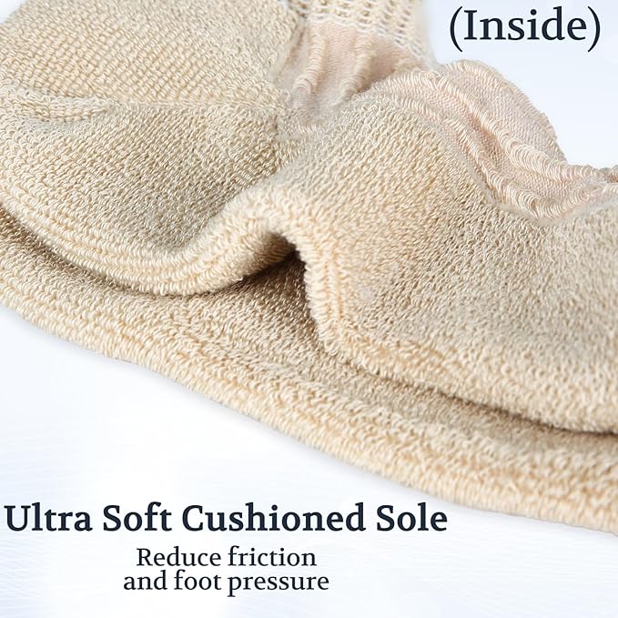 - 1.【Non-binding & No-irritating】: The top is not tight or binding at all. Slips on easily over ankles but does not slide down, no more marks on legs from socks. Seamless toe enhances your everyday comfort and keeps your toes and blood circulation in top shape. The cushioned sole brings super comfort and touch for diabetic patients’ sensitive feet.