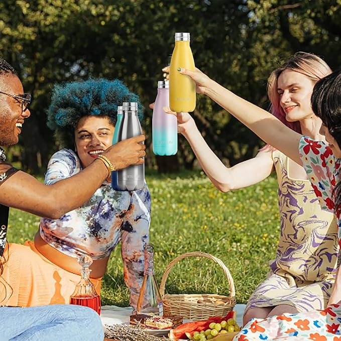 - COLORFUL & UNIQUE:Powder coating is the pinnacle of water bottle exteriors. Choose from a range of vibrant colors to match your personality and style. The Stainless Steel Metal water bottle is crafted with fashionable color powder coating, will not be scattered, discolored and difficult to scratch. Available in 9, 12,and 17-ounce sizes,making it easy to find the perfect size for your needs.