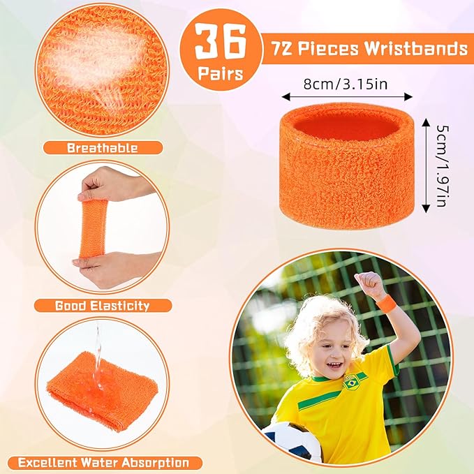 - No Worry About Sweating: our kids orange sweatbands are made of cotton material, soft, skidproof and breathable, absorb sweat and dry quickly, comfortable to wear, helping you have a good experience and performance in sports, you can use for long periods of exercise