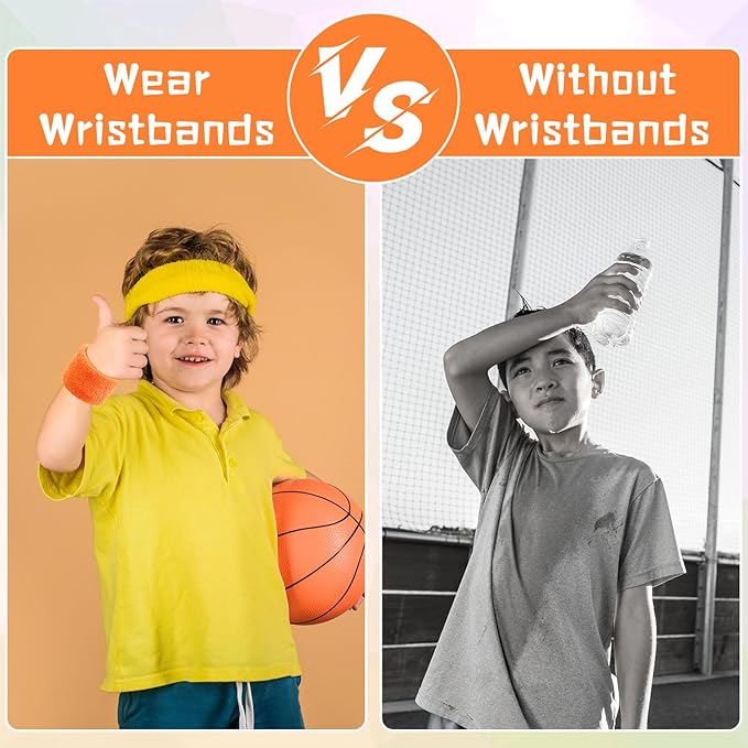 - Make You Cool: the orange wristbands sweatbands is designed in vibrant orange color, matching your clothes easily, bright colors can make children more eyecatching and goodlooking in basketball, volleyball, football, table tennis and other team and activities