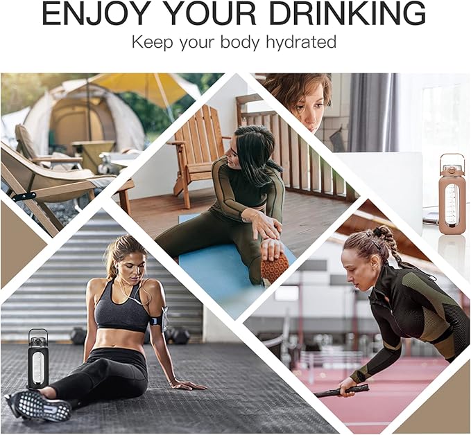 - 【Motivational Quote & Time Marker】With funny inspirational quote and time marker, the 64 oz glass water bottle can remind you reach your goals of drinking all days.Large capactiy allow you not to refill it frequently anymoe.That is equivalent to 8 cups of water which suggest by scientists for human drink per day, helps you stay hydrated and daily heath.