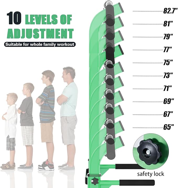 - 10 Levels Height Adjustment: Measuring 32.3Lx29.5Wx65~82.7H (inches) and supporting a weight capacity of 330LBS, this pull up bar is an ideal fitness tool for adults in their homes or offices. The height of the pull up tower can be adjusted from 58.5~82.7", making it suitable for all fitness needs. And the lowest level is tailored for kids, while the pull up bar station caters to the entire family's workout needs.