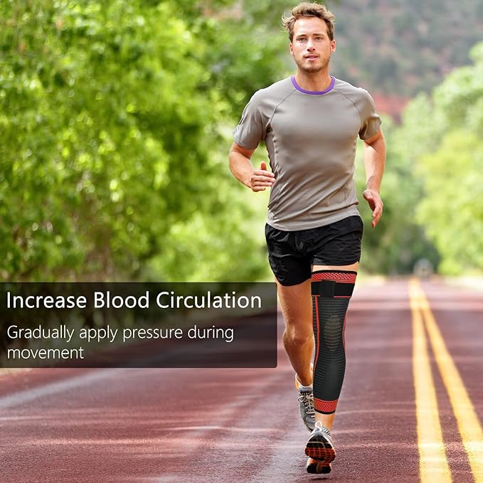 - Rapid Recovery With Graded Compression: Our long knee support graded compression promotes blood circulation, helps promote injury recovery, and alleviates knee bone and joint pain caused by arthritis, myositis, swelling, meniscus tears, strains, sprains, leg spasms, and varicose veins.