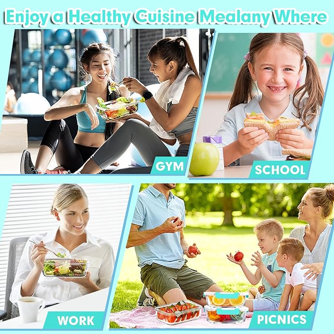 - SAFE & PORTABLE: Compared to ordinary plastic meal prep containers, our glass meal prep containers are non-toxic and long-lasting, won’t absorb food flavors, or stains, and make them easy to clean. Perfect sizes and shapes are perfect for various occasions and events.