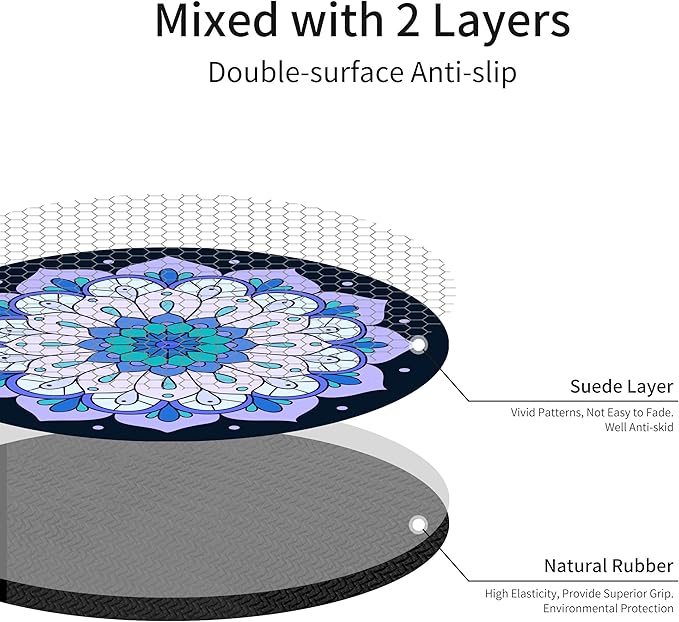 - Non Slip: The non-slip design features anti-slip particles on the back for a firm grip, keeping you grounded, focused, and in perfect balance. The beautiful printing on the mat is made with eco-friendly water-based inks, maintaining vibrant colors even after repeated washing.