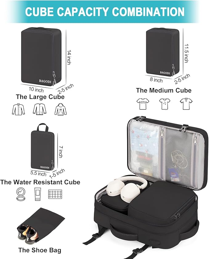 • Expandable Travel Backpack:With an expandable capacity that goes from 22L to 42L, you'll have all the space you need for 3-5 day trips or everyday commuting, giving you the freedom to take everything you need with you. And this carry on backpack meets IATA-approved size requirements, you can easily store it in the overhead bin or under your seat without any hassle. Whether you're traveling around the world or just around town, It is the perfect companion for your next adventure.