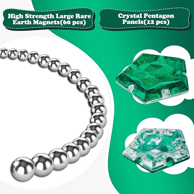 - [Holographic Glitter Panel]: Each pentagonal panel has stunning crystals and iridescent glitter, which emits dazzling iridescent when exposed to direct sunlight or lamplight. Each surface is cut into convex and concave shapes to better trigger nerve endings in fingertips and boost IQ.