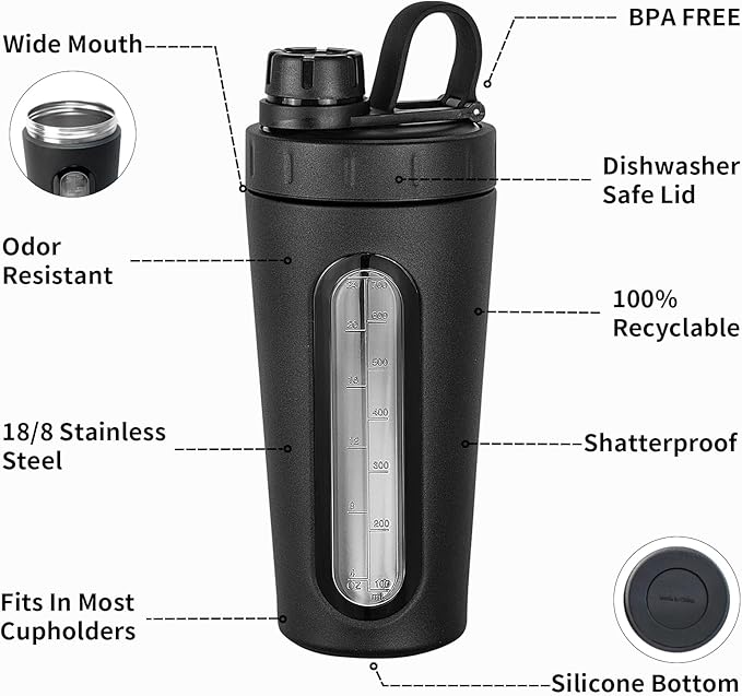 - 【Perfect Gift for Fitness Enthusiasts】Surprise your friends and loved ones with this perfect gift idea! TOOFEEL stainless steel protein shaker bottle is the first choice gift for fitness enthusiasts on birthdays, christmas, thanksgiving and more. Please feel free to contact us if you have any questions about the shaker bottle.