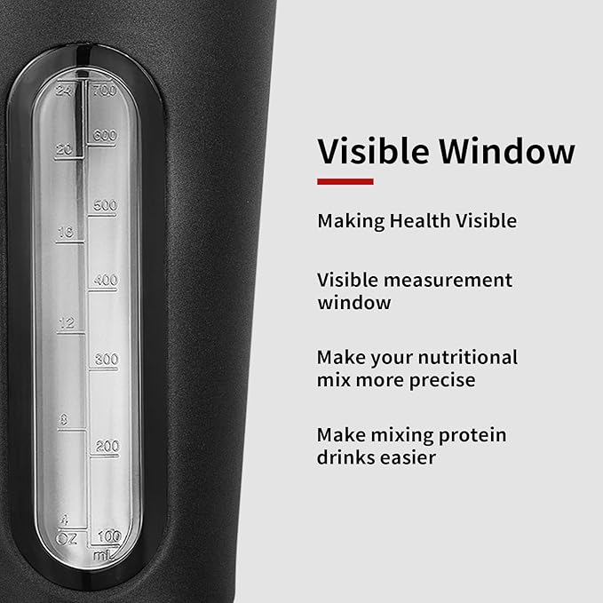 - 【EASY TO USE AND CLEAN】Making health visible! Scale engraved on the visible window to adjust the water level as needed, and a wide mouth for easy adding of scoops and liquids. Toofeel's 28 oz shaker bottle has a comfortable rubber strap for easy carrying and has a BPA-free, 100% leak-proof twist-on lid that is easy to open but stays secure while shaking or drinking. (Cleaning instructions: Hand wash, do not put in the dishwasher, it may cause leakage at the visible window).