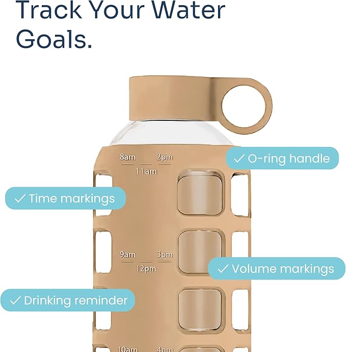 - Track & Stay Motivated: Glass water bottle with time and volume markers for easy hydration tracking; ideal borosilicate glass water bottle for gym, office, travel, and everyday use