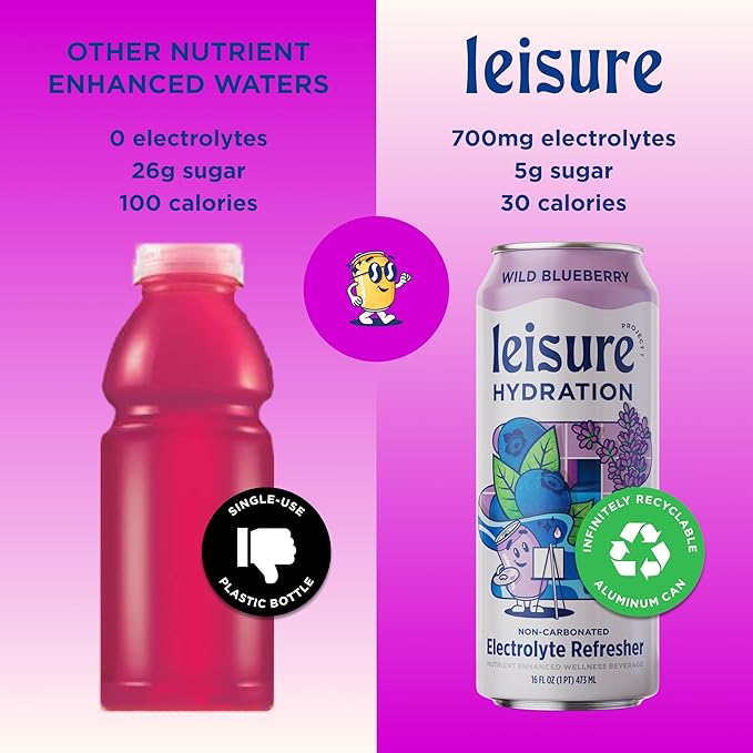 - LIFE IS DEHYDRATING! REFRESH WITH LEISURE: Leisure Hydration beverages are the ultimate flavored water experience, packed with 700mg of naturally-sourced electrolytes. Infused with magnesium, ashwagandha, and L-Theanine, this nutrient-enhanced water helps you stay relaxed while giving you a subtle boost of energy—perfect for adults looking to hydrate the healthy way.