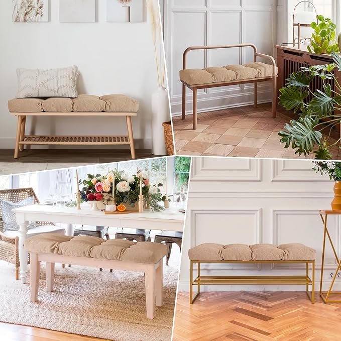 - [Breathable & Durable Fabric] - Enjoy ultimate comfort with our bench cushion crafted from breathable and durable Polyester Brushed fabric. The fabric has a moderate thickness with a soft texture, offering a delicate and smooth touch. It provides excellent warmth and colorfastness, resisting pilling even after frequent washing.