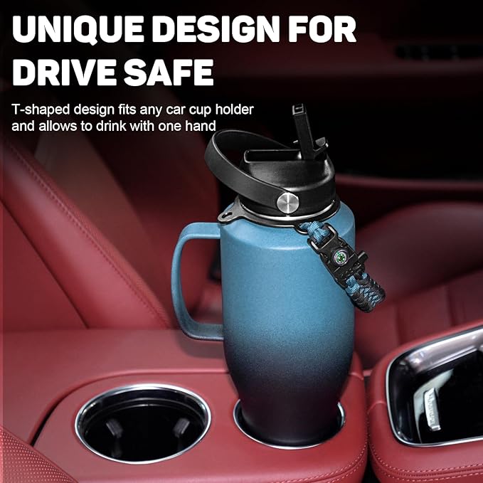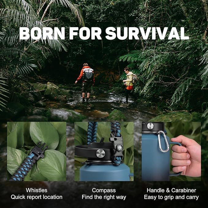 - 【VERSATILE FOR ANY OCCASION】ABOTOCUP insulated water bottle provide a different drinking experience with two lids that are fully leak-proof and designed for effortless drinking. Perfect for any indoor and outdoor activities. Come with ergonomic handle and Paracord handle with compass, safety ring that built for the toughest.
